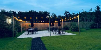 Garden Patio area open seasonally. Features 5 tables with umbrellas for daytime and nighttime use!