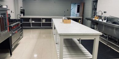 Full Catering Kitchen with dedicated refrigerators, convection ovens, and 6 & 4 Burner Range. Provides spacious area to prepare delicious meals. 6 chafing dishes and selection of kitchen utensils and equipment available for no charge.
