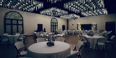 * 2400 sq. ft. Ballroom 18 hours set up to tear down for reception.